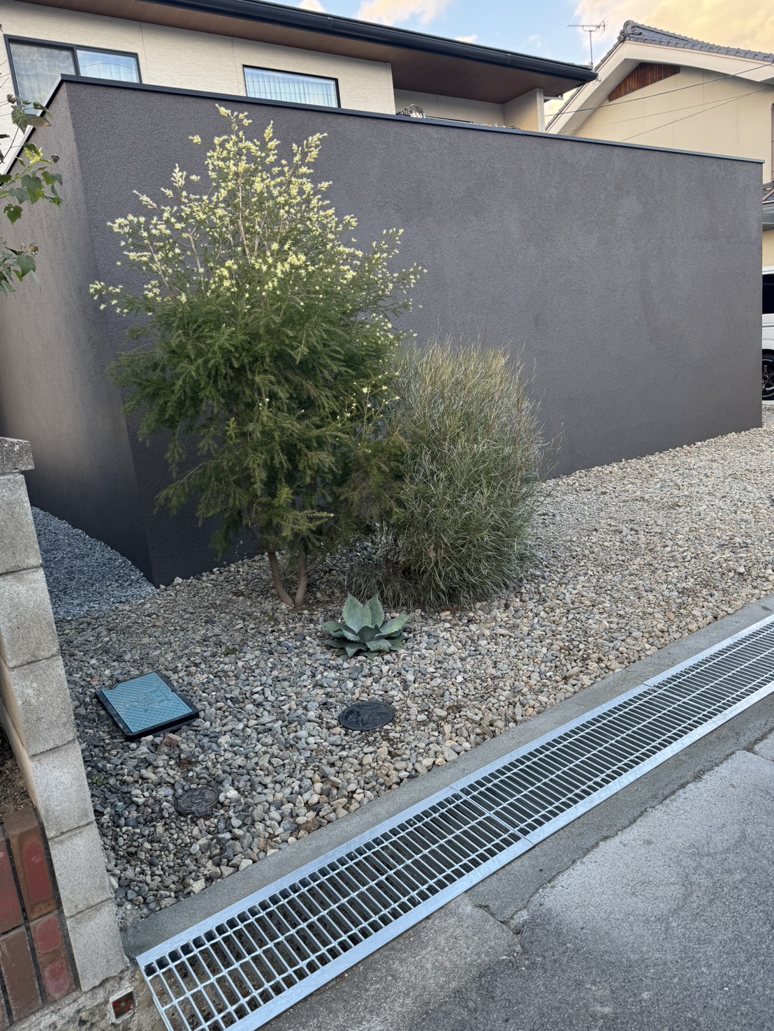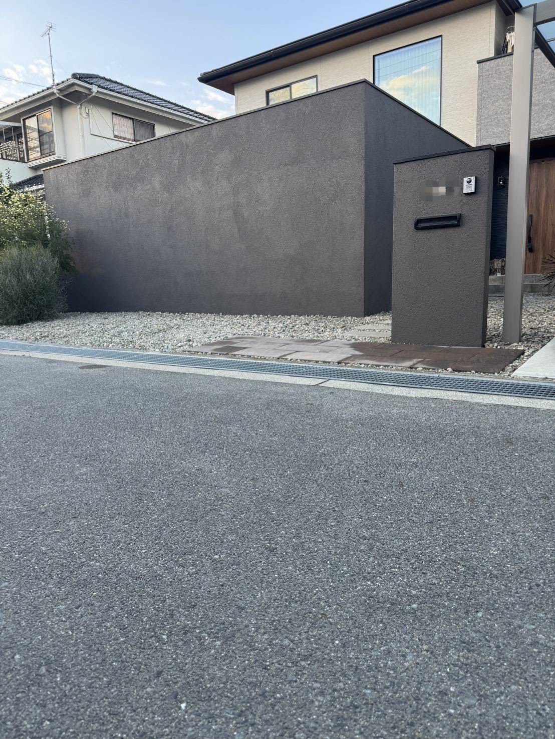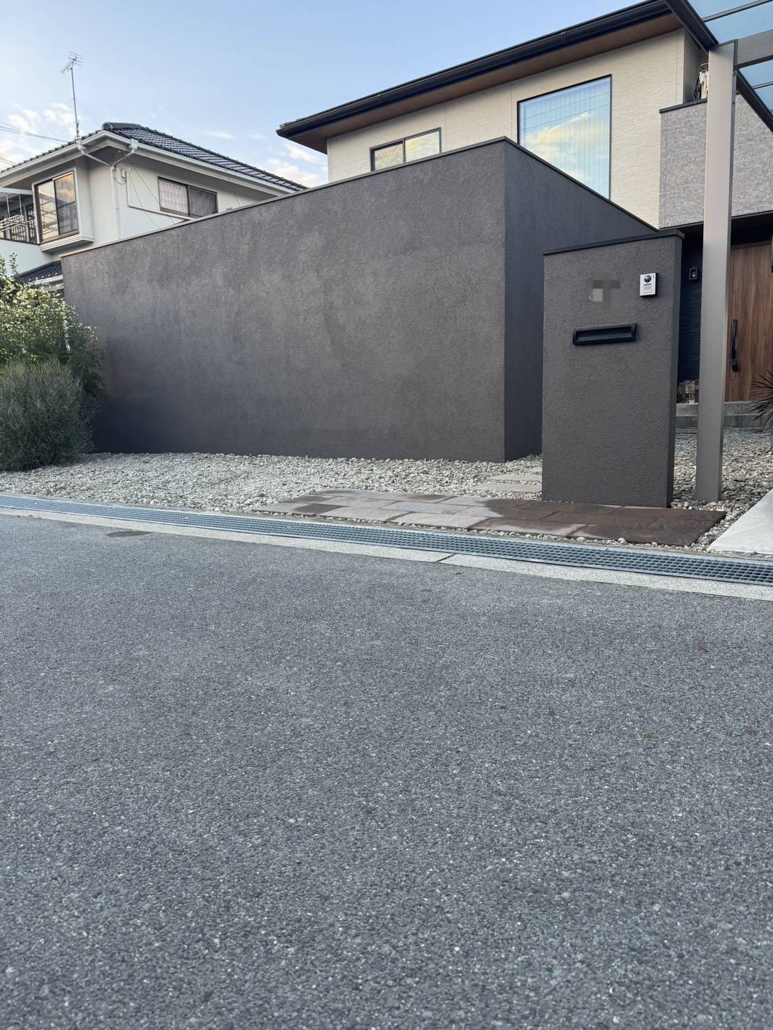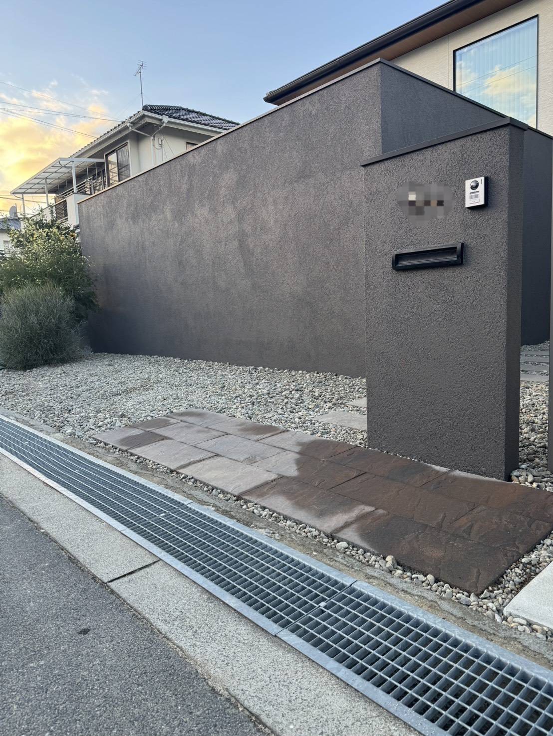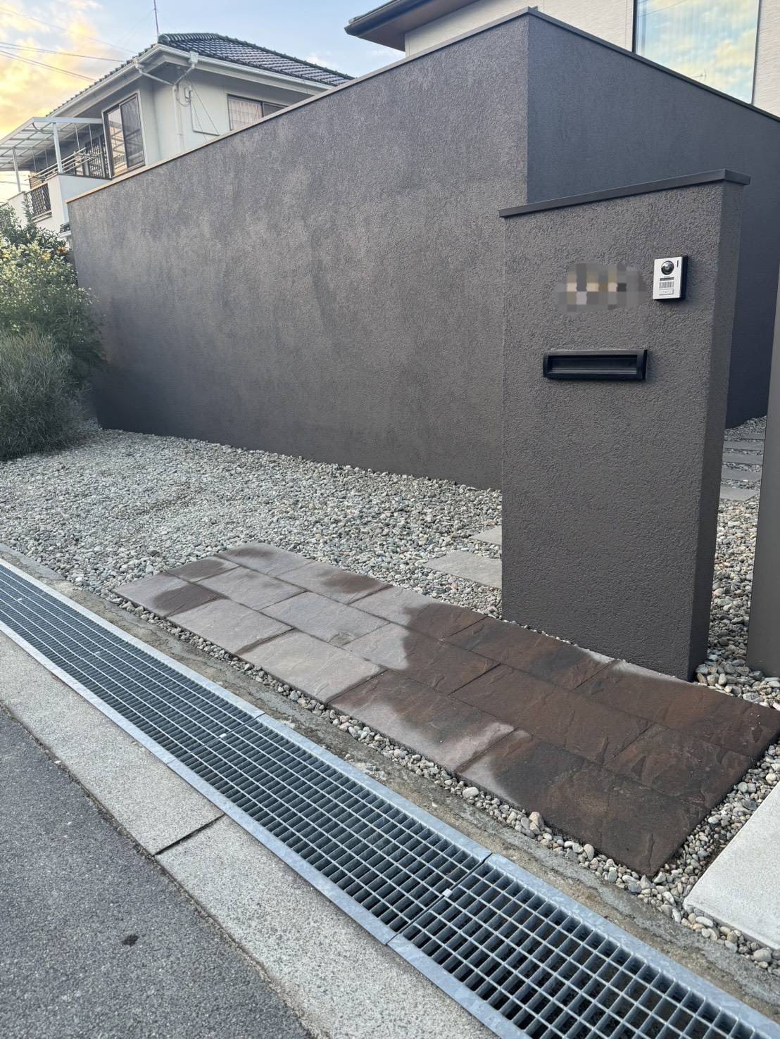 重厚感のある石調デザインの塀とくぐり門